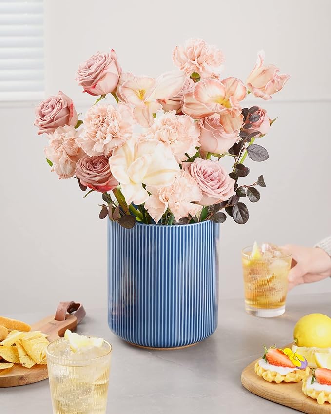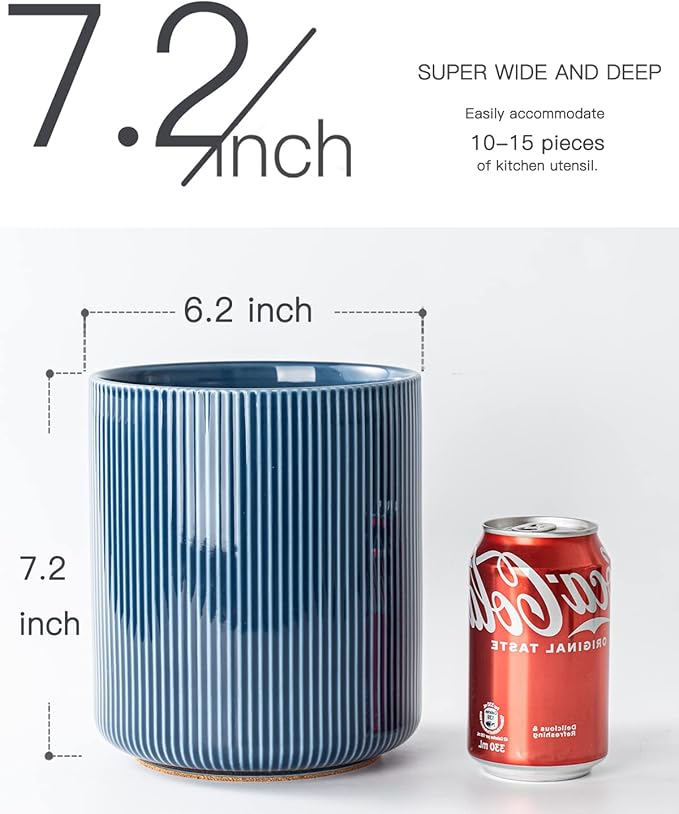 getstar Large Kitchen Utensil Holder for Kitchen Counter (H7.2” x W6.2”), Ceramic Cooking Utensil Holder with Cork Mat (Navy, Utensils Not Included)