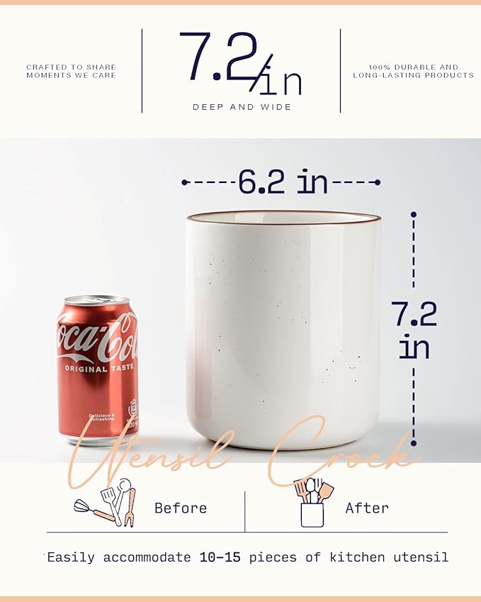 - [Large Utensil Holder] With a 6.2” width and 7.2” height hence enough space for storage, 10 to 15 pieces of common utensils can easily go into it, make utensils organized and easy to find, give you a neat and tidy kitchen