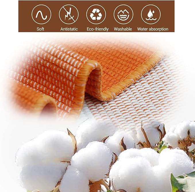 - 100% COTTON: Hand-woven, eco-friendly fabric, anti-static, soft and durable cotton rug, comfortable, excellent water absorption, will not harden with long-term use.