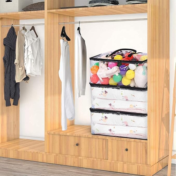 - 【UPGRADED MATERIAL】: Material of this storage bag is made of thick PVC. The transparent appearance allows you to see the internal structure directly and clearly, while also playing a waterproof and insect-proof effect. Keep your items safely