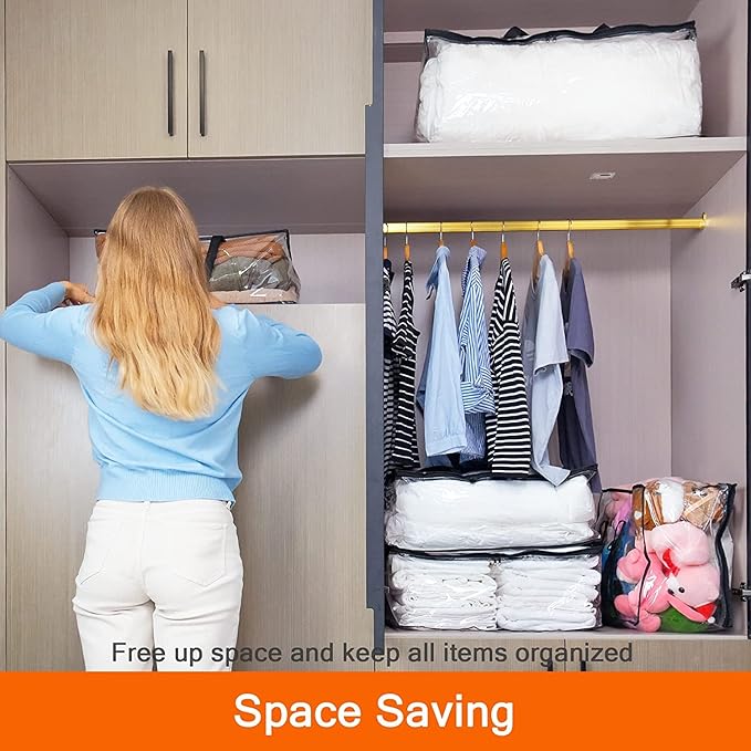Vieshful 5 Pack Clear Comforter Storage Bag, 40L Clothes Storage Bag with Zipper Closet Organizer, Plastic Storage Containers Moving bags for Comforter, Blanket, Bedding, Duvet, Toys