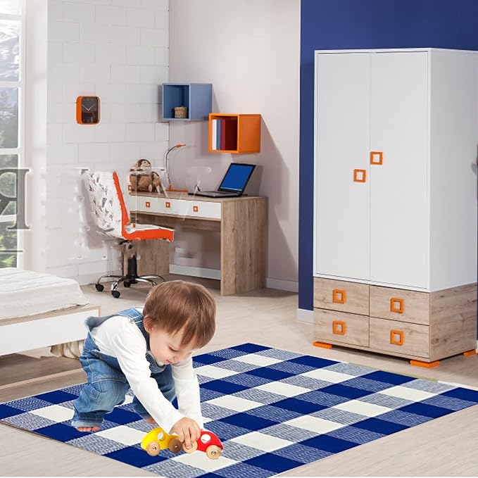 - THICKNESS OF THE HIGHEST STANDARD: Our buffalo plaid rugs have been thickened from 1020g/㎡ to 1200g/㎡, which means that plaid rugs are thicker and more durable! It is also more comfortable to step on.