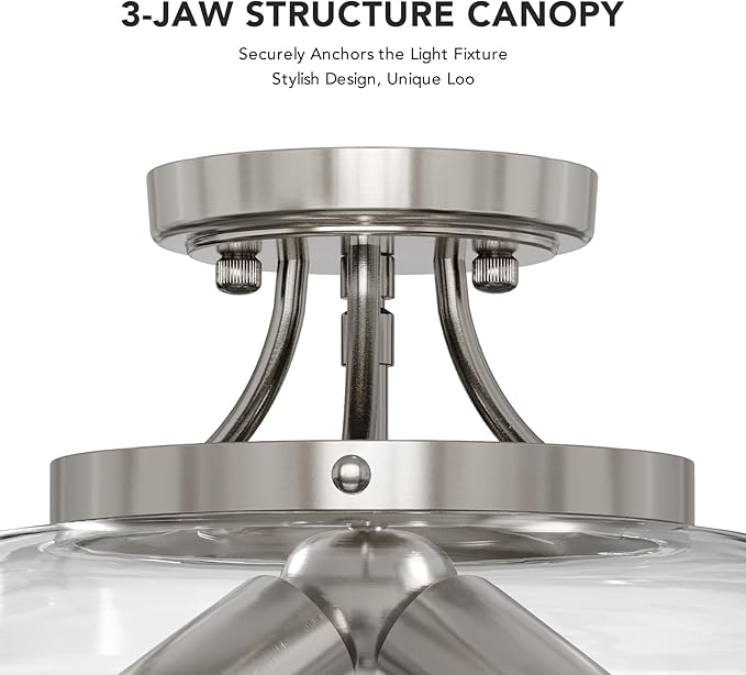 - Modern Ceiling Light: Vonluce’s semi-flush mount light pairs a sleek brushed nickel canopy with a clear glass shade, adding a modern touch to your decor. It provides bright, unobstructed illumination, creating an open and inviting atmosphere in your room