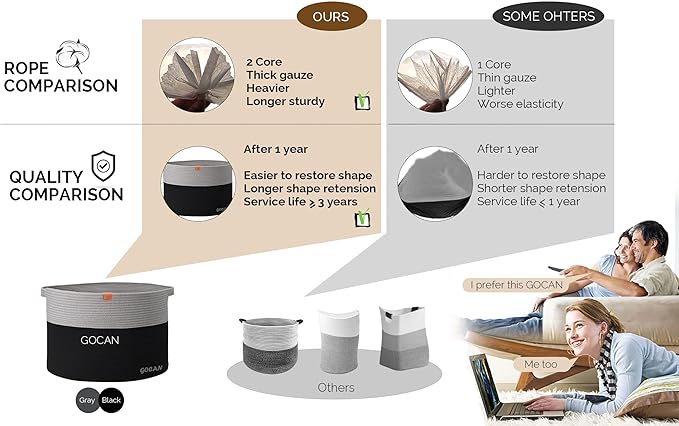 - ✅XXXL Large cotton rope basket: Measuring 22x22x14inches, this rope laundry baskets is large enough and durable for blankets, laundry, plants, throw pillows, clothes, cushions, comforters, books, magazines and anything else you have in living room, bedroom, bathroom, lounge, helping you to organize your room and make your messy home tidy,good new year gift basket.