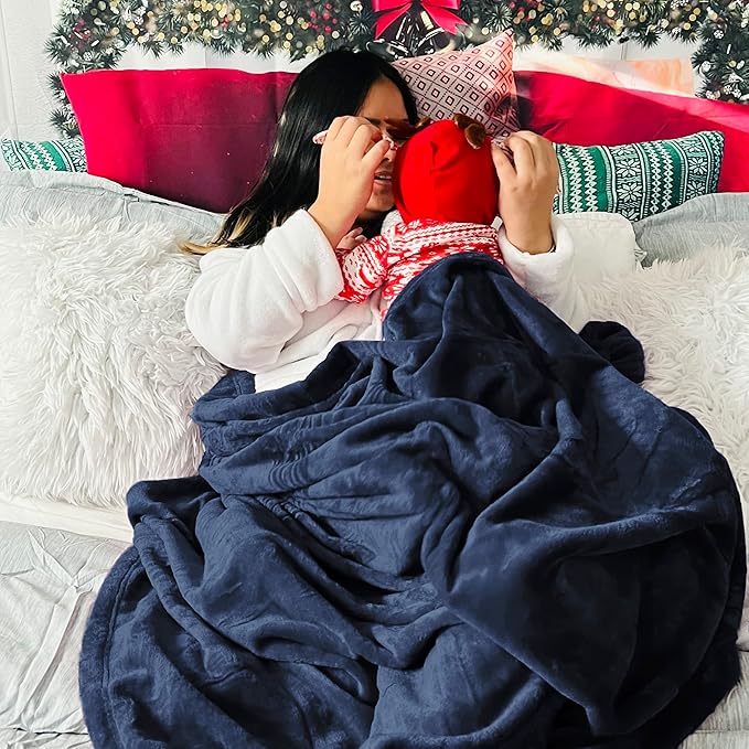Bedsure GentleSoft Fleece Throw XL Blanket Navy - 300GSM Soft Lightweight Plush Cozy Blankets for Bed, Sofa, Couch, Travel, Camping, 50x70 inches