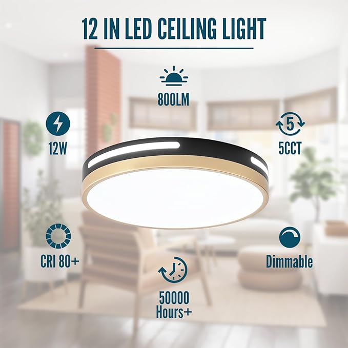 - ๐ใ12 Inch 24W Round Ceiling Light Dimmable set of 2ใIndustrial flush mount ceiling light LED features an integrated LED panel, with a power consumption of only 24W (equivalent to 120W), it delivers a bright output of up to 1800 Lumens. 12 inch LED interior bathroom ceiling light fixtures to traditional lighting not only provides even and brilliant illumination but also helps you save significantly on electricity bills. Moreover, it offers a flicker-free, non-glare, and non-buzzing lighting experience, ensuring optimal eye comfort and reducing eye fatigue for your family.