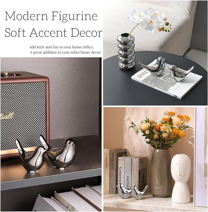 - Lovely Little Bird Shining Ornaments are ideal to decorate your Living room, Bedroom, Porch, Shelf, Desktop, Office, Cabinet etc.; Cute silver pieces will add a modern fashion vibe to your room.