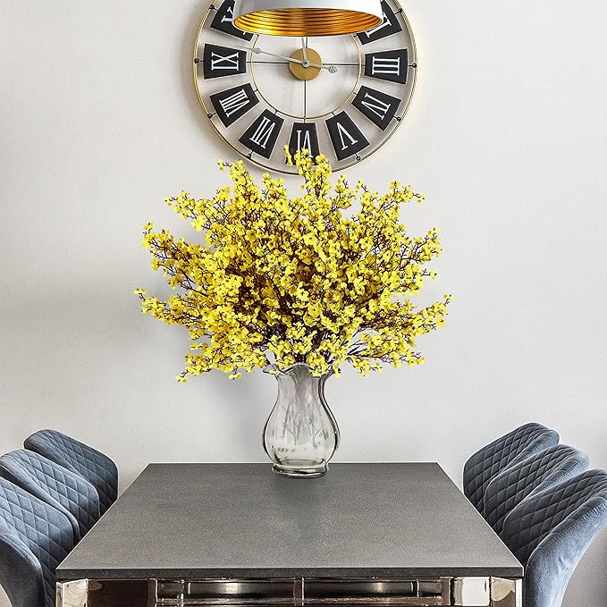 Sggvecsy 15 Pcs Babys Breath Artificial Flowers Gypsophila Bouquets Bulk Real Touch Fake Silk Flowers for Home Wedding DIY Floral Arrangement Kitchen Table Centerpiece Festival Decoration (Yellow)