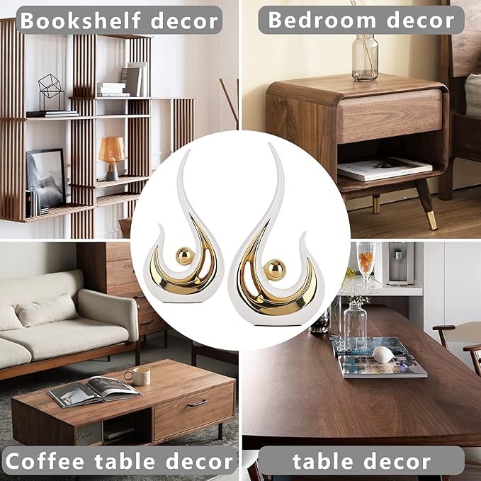 LCCCK White Gold Abstract Figurine Statues for Home Decor – Modern Ceramic Sculpture Accent, Decorative Statues for Living Room, Shelf, TV Stand, Office or Coffee Table Centerpiece Art Decoration