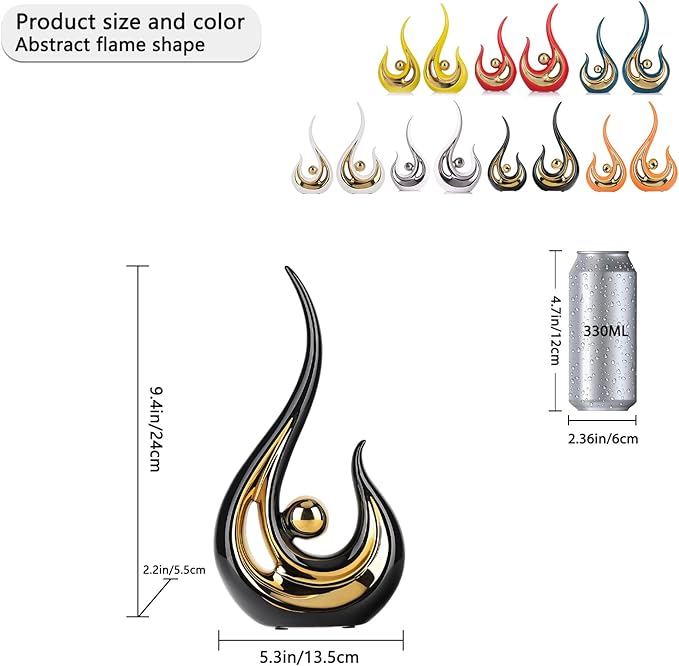 - Eye-Catching Abstract Flame Design: This abstract ceramic statue stands 9.4"H × 5.3"W × 2.2"D, with a striking flame shape that symbolizes creativity and inspiration. A captivating sculpture for bookshelf, TV stand, or aesthetic room setup. adornos para sala, figuras decorativas para estantes