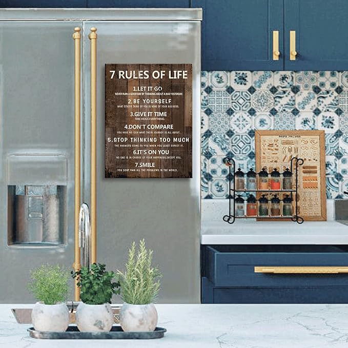 7 Rules of Life Wall Art Motivational Inspirational Poster Printed on Canvas Wall Decor for Living Room or Office Size11.5 x 15 Inch Framed Canvas Prints For Bedroom or Home Art Decoration Ready to