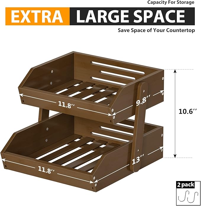 - LARGE CAPACITY: Gmtsl fruit basket for kitchen counter used as large wooden fruit bowl with 2 banana hooks, you can put fresh fruit,Bread,Snack in each tier. Different sizes(2 or 3 tiers) meets different vegetable storage needs (each basket can be used separately)
