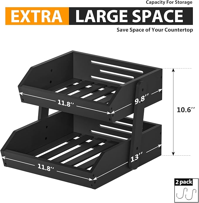 - SUFFICIENT STORAGE SPACE: 2 Bamboo fruit baskets of different sizes are used to meet different storage needs (each basket can be used separately). Plus two detachable hooks for extra storage.