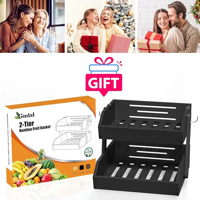 - 2-TIER FRUIT BASKET: The fruit stand is made of high-quality bamboo in the mountains and carefully polished. The partitions are ventilated to facilitate airflow and keep fruits and vegetables fresh.