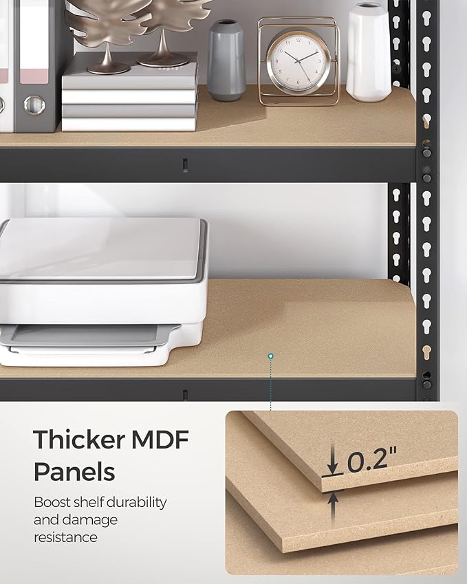 - [Stable and High Load Capacity] The sturdy steel frame and thick MDF panels of this 5-tier shelving unit offer a maximum weight capacity of 462 lb per shelf, while reinforced crossbeams provide extra stability