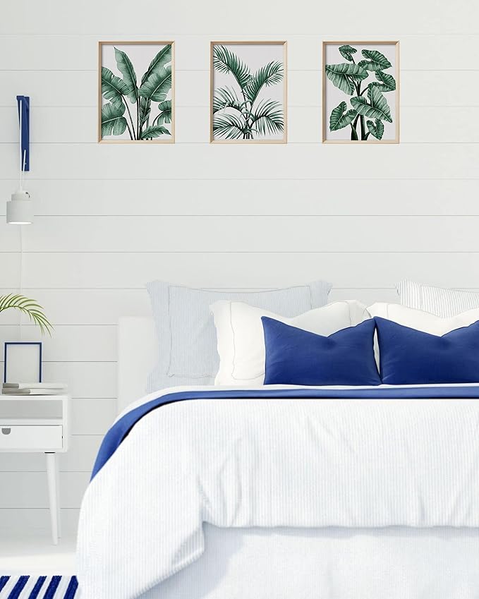 - WALL ART FOR BEDROOM :This set of three "Framed Green Wall Art" prints features abstract palm leaves and eucalyptus leaves on a sage green background, making it a stylish and elegant addition to any living room or bedroom.