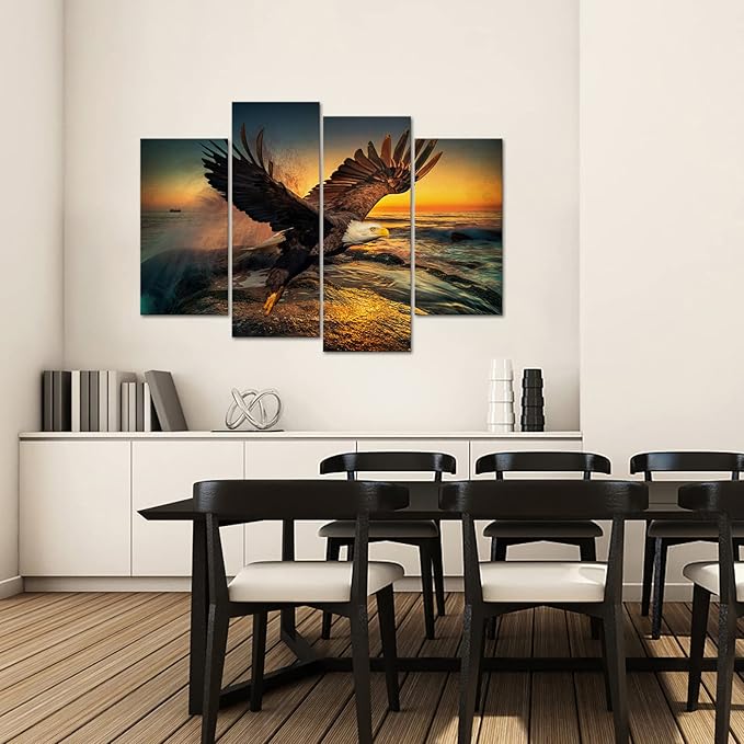 RnnJoile Bald Eagle Canvas Wall Art Flying Eagle Sunrise Pictures Prints Large Bird Above Sea Scenery Painting Artwork for Bedroom Living Room Decoration Framed