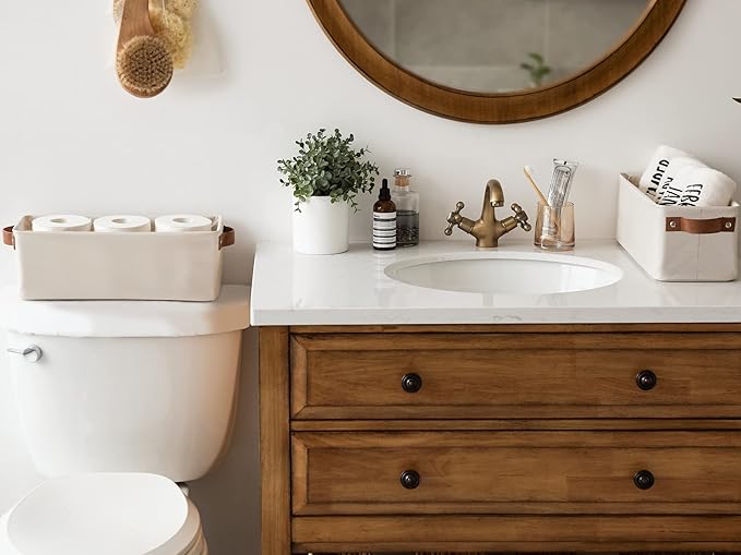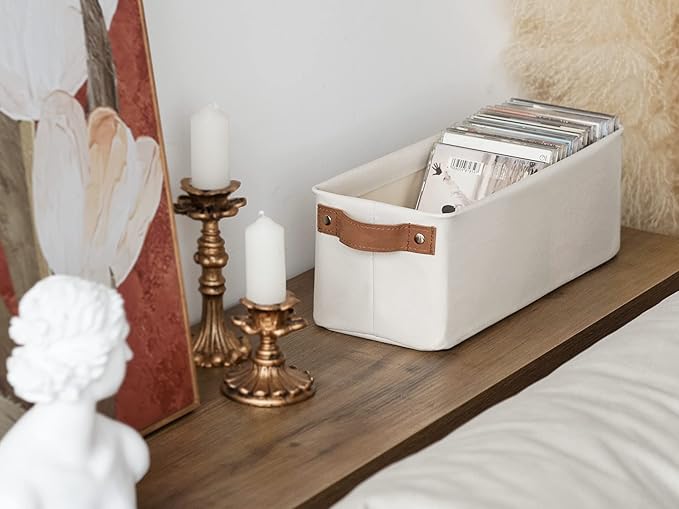 StorageWorks Narrow Storage Bins, Small Basket for Closet and Shelves, Fabric Organizer with Handles, Toilet Paper Storage, Beige, 2-Pack