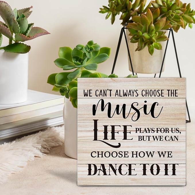 We Can't Always Choose the Music Life Wooden Box Sign Desk Decor, Music Lover Themed Wooden Sign for Home Living Room Bedroom Classroom Shelf Table Wall Desk Decor 5 X 5 Inch