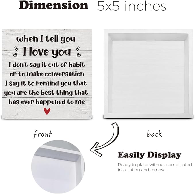 When I Tell You I Love You Wooden Box Sign Desk Decor, Romantic Quote Wood Box Sign for Home Bedroom Shelf Table Decoration 5 X 5 Inch