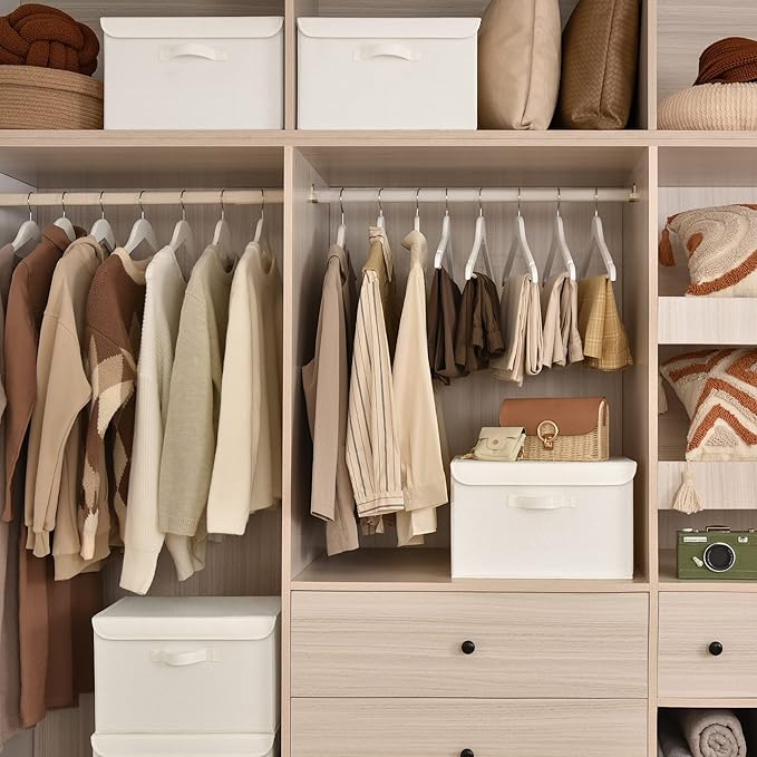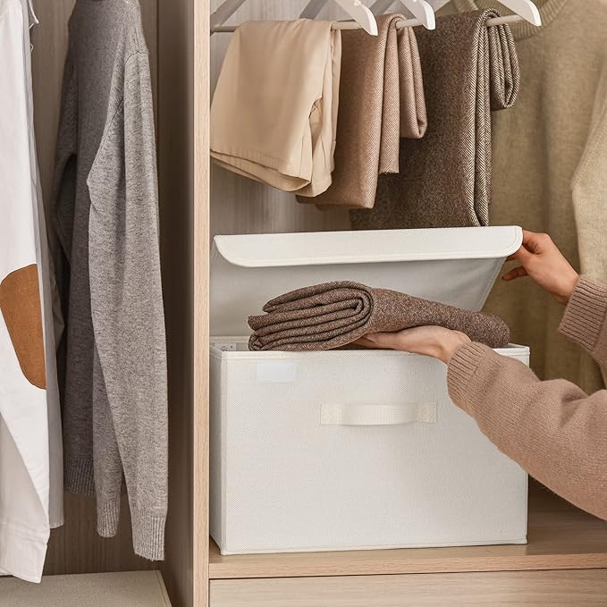 GRANNY SAYS Storage Bins with Lids, Fabric Storage Boxes, Closet Organizers and Storage, Ivory White, 2-Pack