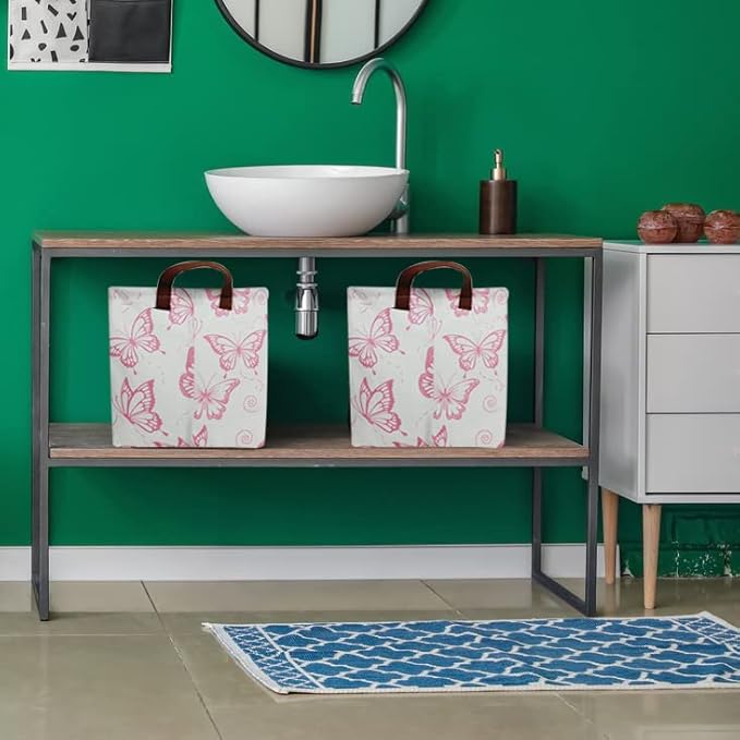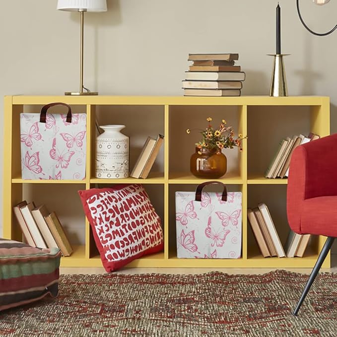 CLOCOR Rectangular Pink Basket, Collapsible Storage Bin, Waterproof Storage Box with Handles, Gift Organizer, Shelf Basket(Pink Butterfly)