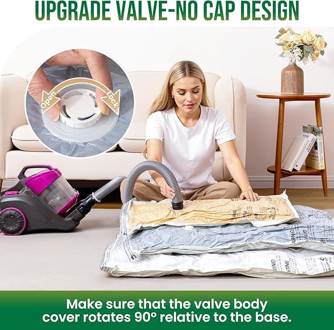 - Multi Work Methods: Simply Pack, Seal, Vac (or Press) and store your items in closet or suitcase. Using vacuum sealed storage bags are suitable with any standard vacuum cleaner, also can be used to compress and exhaust by a pillow, realize the freedom of various air extraction tools