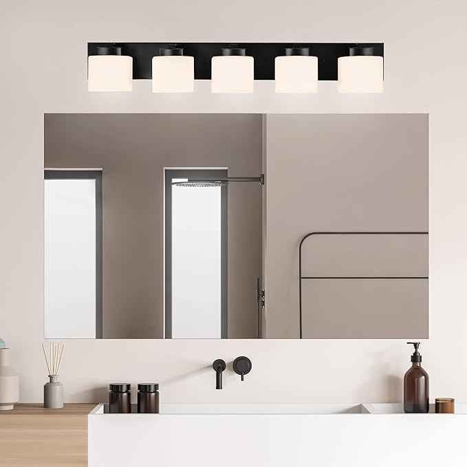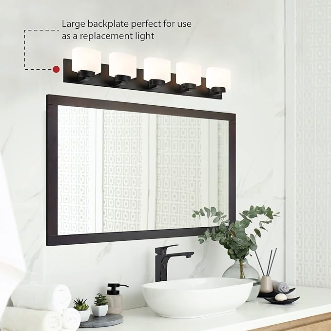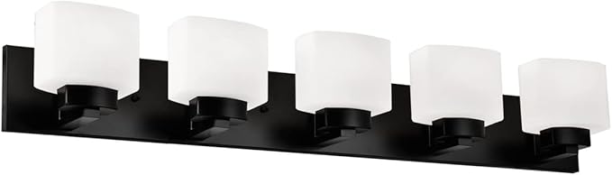Design House 589499 Dove Creek Vanity Light Dimmable with Frosted Glass for Above Bathroom Mirror, Matte Black, 5-Light