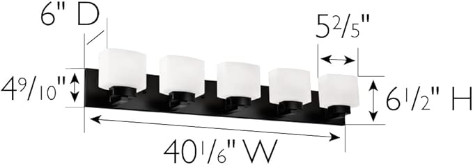 - Five Light Vanity Light: Uses five 60-watt medium base bulbs or LED equivalent (not included)