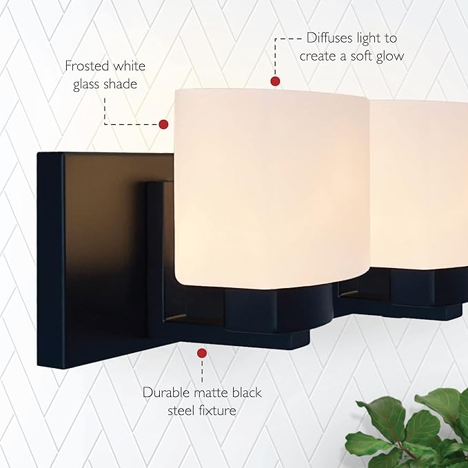 - Traditional Style Vanity Light: Stunning matte black finish with square frosted glass shades that can be mounted up or down