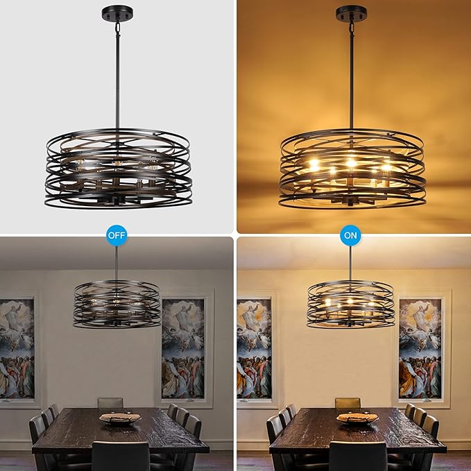 - Design: Kitchen light fixtures are made by highly skilled craftsmen. The classic combination of retro wood texture and black, the stylish retro double-layer drum frame design, makes this farmhouse kitchen lighting full of rustic retro atmosphere. Perfect for dining room, living room, kitchen island, entryway, hallway, foyer, etc.