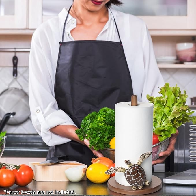 - We Keep Your Needs in Mind: Featuring an enlarged base and thickened pole, this sea turtle decor is heavier than most countertop wood paper towel holders. Makes ripping paper towel smoother and easier