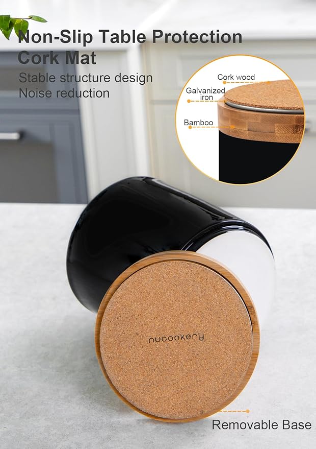 - Protection Cork Mat: The bottom has a cork matto protect the counter, which can prevent your table or countertop from being scratched when moving the utensil holder, as well as avoiding noise from friction.