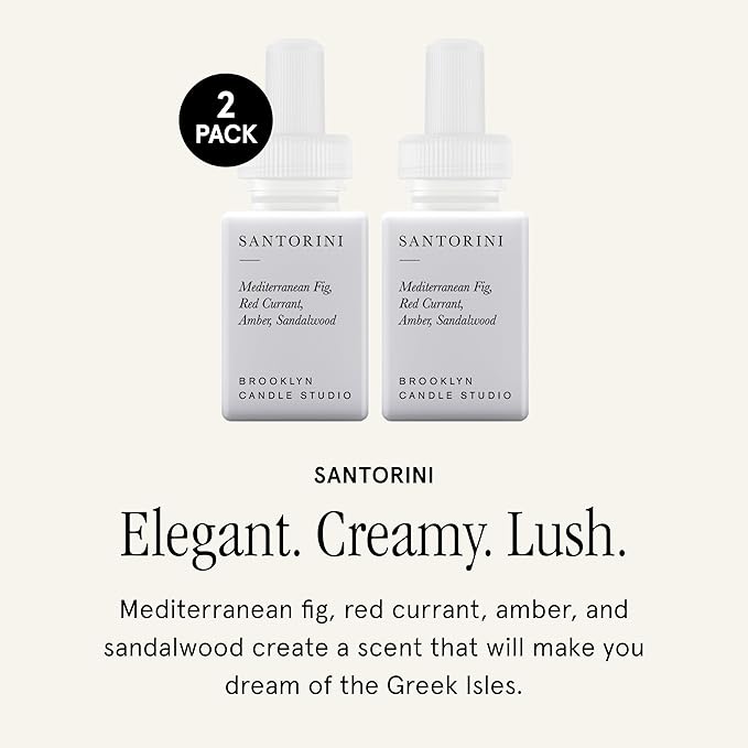 Pura & Brooklyn Candle Studio Home Scent Refill - Smart Home Air Diffuser - Up to 120-Hours of Luxury Fragrance per Refill - Home Essential - Clean & Safe Diffuser Fragrance - 2 Pack, Santorini