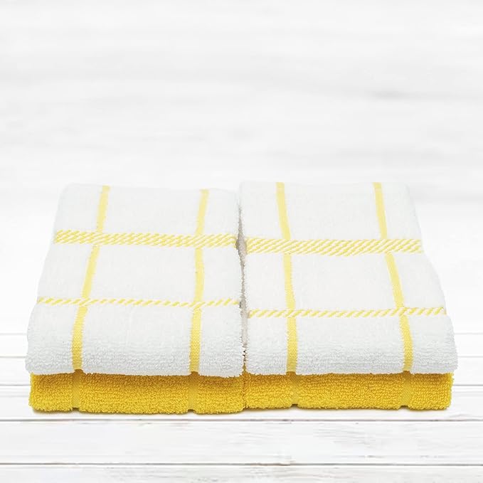 100% Cotton Terry Dish Towels, 4 pack16 x26 Inches, Super Soft and Absorbent Kitchen Towels, Perfect for Kitchen Cleaning and Dish Washing | Yellow