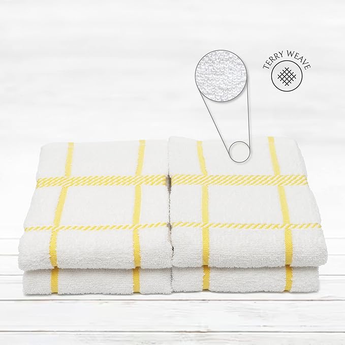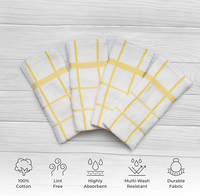 100% Cotton Terry Dish Towels, 4 Pack Checks, 16 x26 Inches, Super Soft and Absorbent Kitchen Towels, Perfect for Kitchen Cleaning and Dish Washing | Yellow