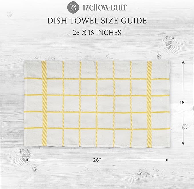 - Mellow buff dishcloths and dishtowels are made of 100% cotton with supreme quality and exquisite workmanship. Designs are simple, perfect size and it will give the feeling of being home by co-ordinating with most kitchen decor.