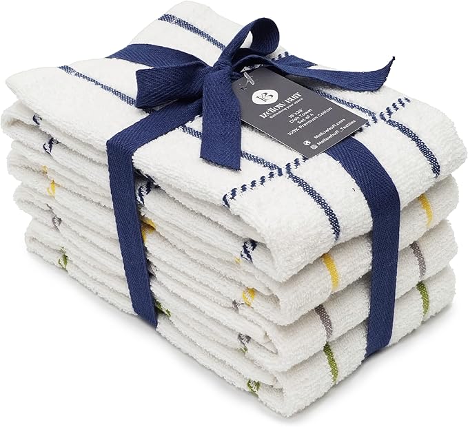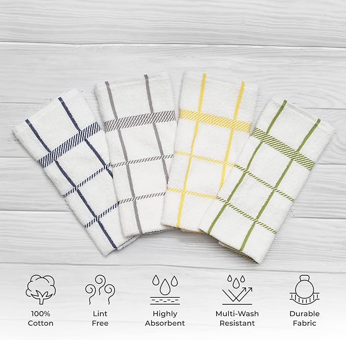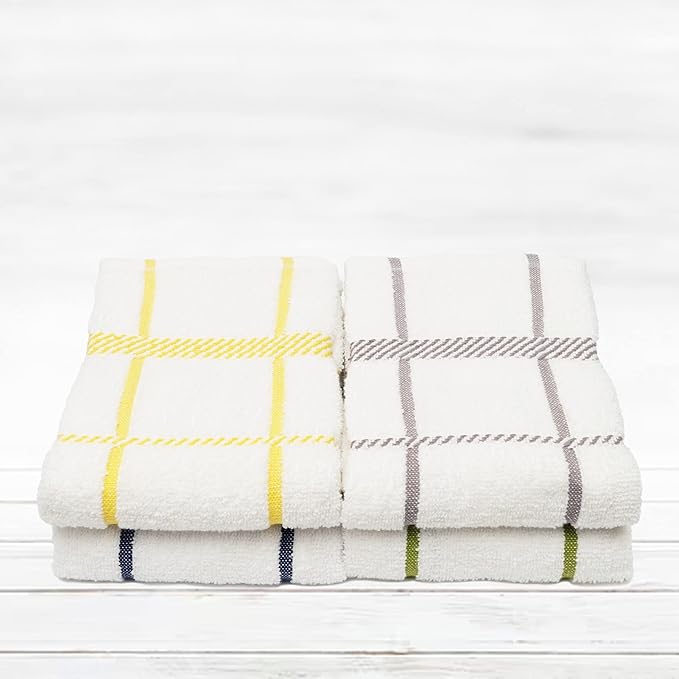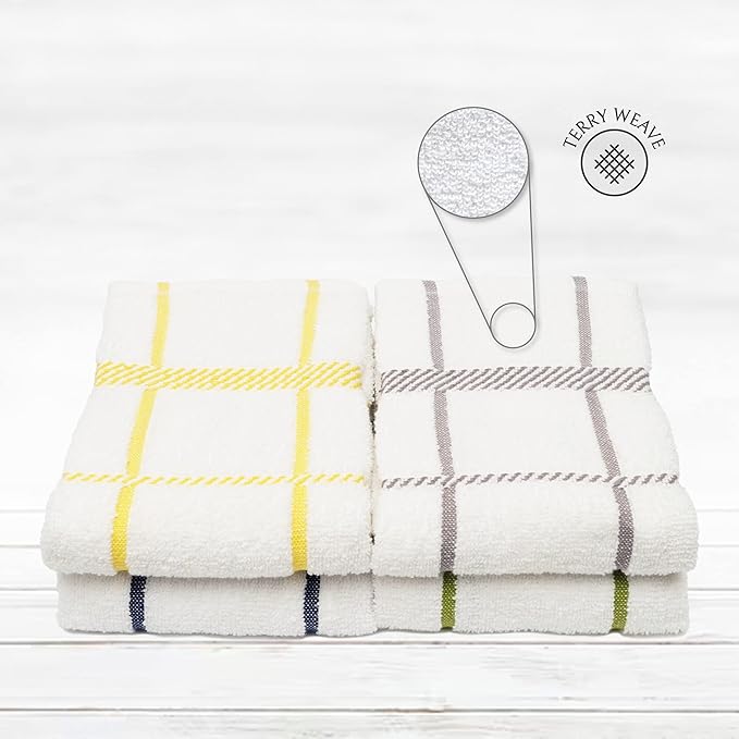 100% Cotton Terry Dish Towels, 4 Pack Checks, 16 x26 Inches, Super Soft and Absorbent Kitchen Towels, Perfect for Kitchen Cleaning and Dish Washing | Assorted
