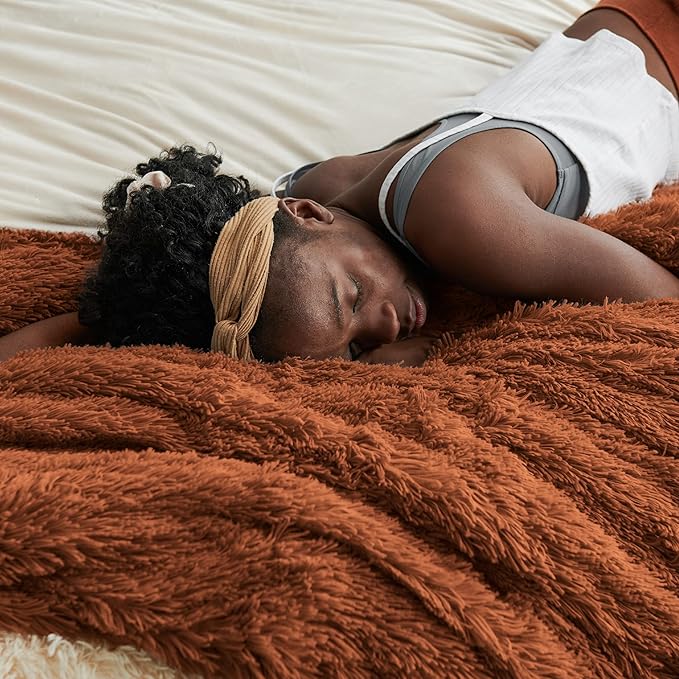 Bedsure GentleSoft Fluffy Burnt Orange Blankets Queen Size for Bed, Cozy Thick Sherpa Faux Fur Fleece Fuzzy Plush Winter Warm Soft Full Queen Blankets, Bedroom Decor Orange Gifts for Women Men, 90x90