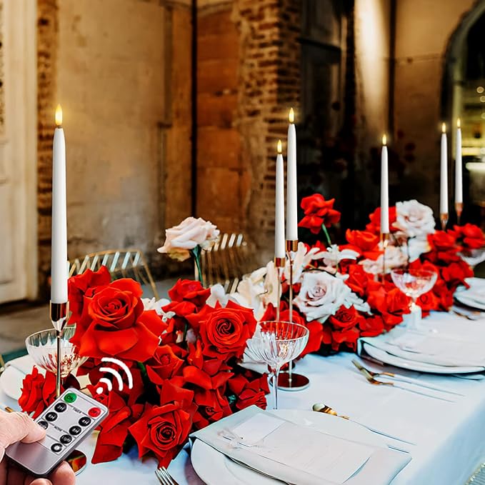- Wax Covered Made: These realistic battery operated taper candles are made of sturdy plastic and covered by a real wax coat which could make the candle sturdy enough while acting like the real one, perfectly simulating the real candles, and the rubber bottom is such a bonus for tightening your candles in the holders.