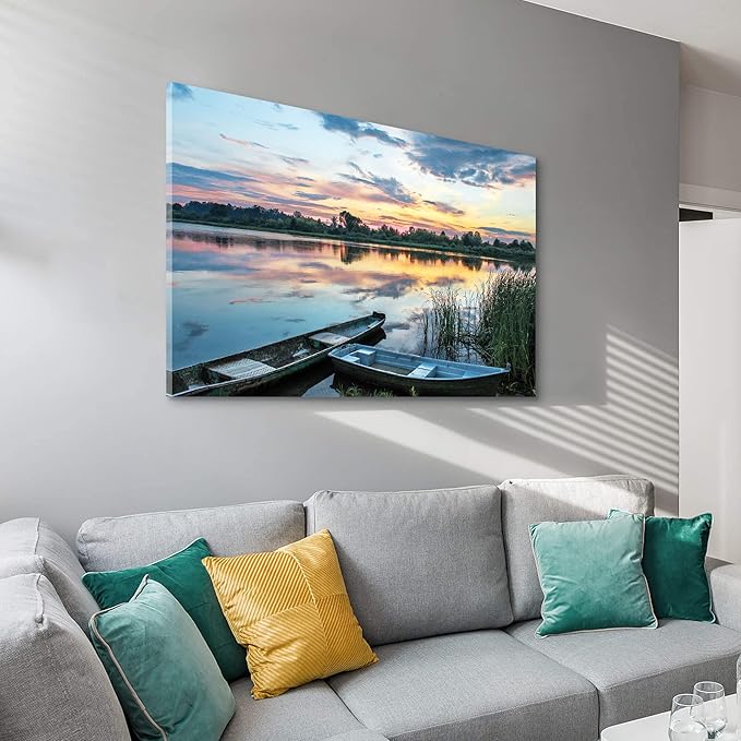- Lake Boat Canvas Wall Art: The actual color of the real item is slightly different from the pictures shown online. This is a copyright licensed image in high definition. Please feel free to contact us if there is any concerns