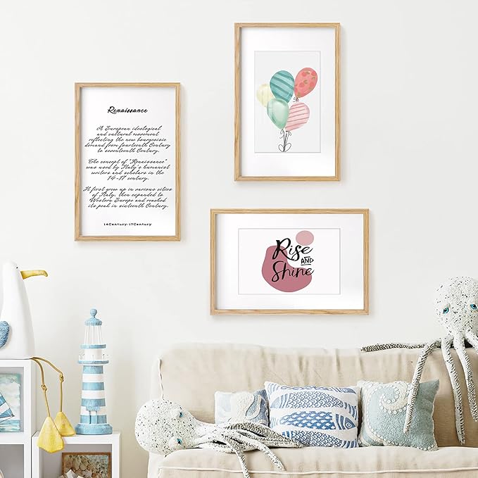 - SLEEK & MINIMALIST HOME DECOR - The neutral oak finish of this wood picture frame set brings out all of the color in your poster, drawing attention to it like never before, you can display your artwork in the most sophisticated way possible with. The excellent craftsmanship and neutral color make it a classic addition to any room - or office! Also a great gift for birthdays, anniversaries, housewarmings, Christmas, Thanksgiving, Hanukkah, and just about any occasion