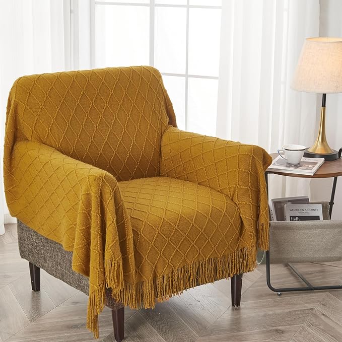- 【FANTASTICAL COMBINATION】: Decorative blankets and throws ,nice raised diamond shape knit design and well-arranged fringes. It's couldn't be better to decorate your home for Christmas, Thanksgiving, and other holidays. A good cozy blanket is a combination of the right price, satisfactory adaptability, and lovely design.