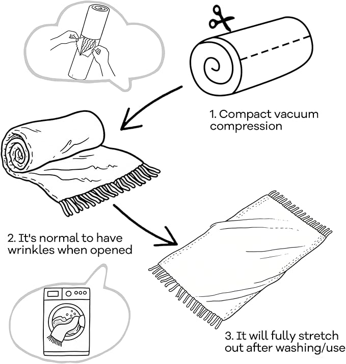 - 【EASY CARE】:Tassel blankets is vacuum packed, When you receive it, there may be some degree of indentation, which is a normal phenomenon,We suggest that you wash it before use, Separate washing with a laundry bag, gentle cycle,,as it will regain its fluffiness.