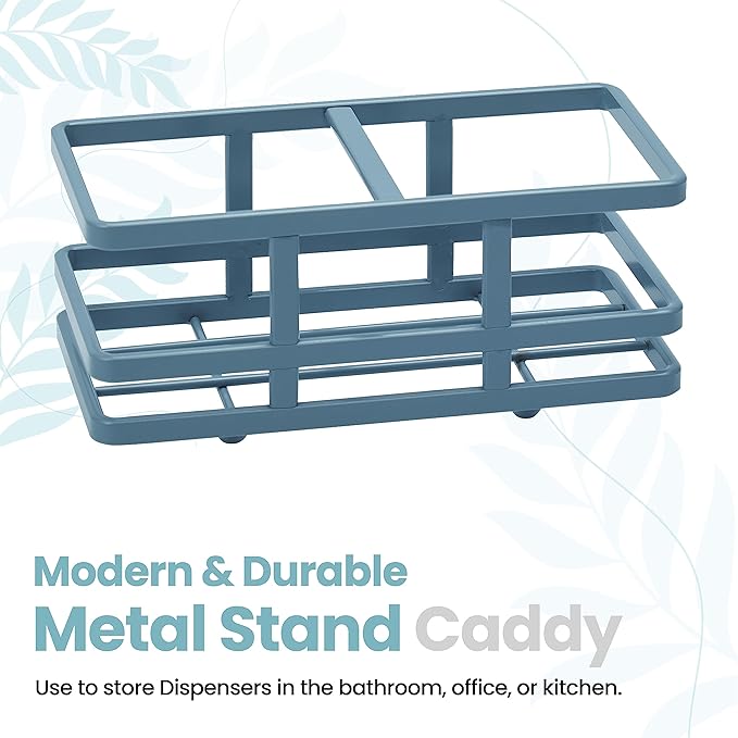 - Includes 2 dispensers with easy opening removable pump head and 1 metal caddy to keep and store Soap dispensers neat and tidy around your countertops. Can be used to store other kitchen or items when holder not in use.