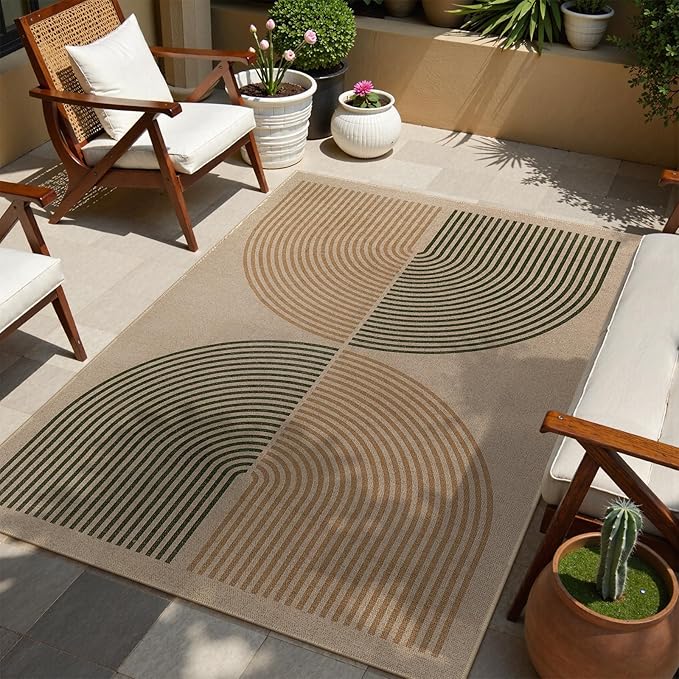 - Modern Rainbow Rug: Its beautiful graphic design combines lines and half circles to create double rainbow textures. Adding contemporary flair to any room, this rug complements a variety of spaces