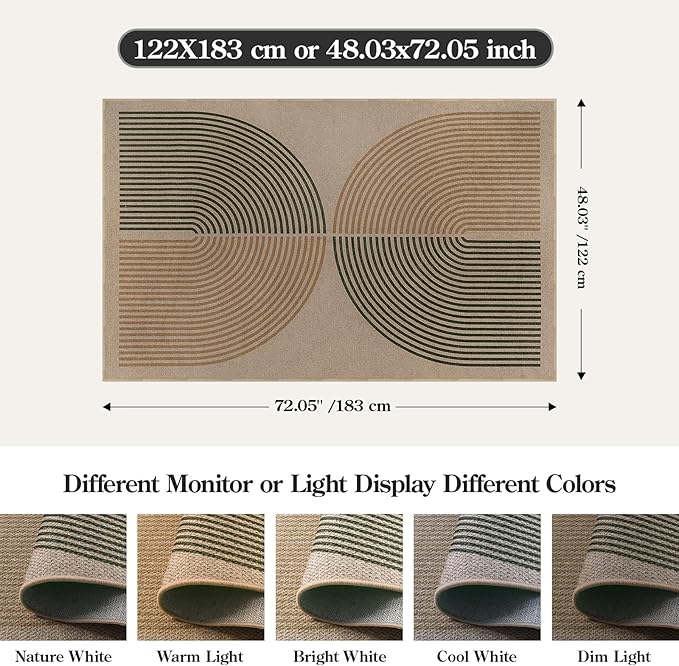 Lahome Modern Rainbow Easy Jute Office Rug, Washable Rugs 4x6 for Living Room Bedroom Farmhouse Kitchen Mats for Floor, Contemporary Non Slip Floor Carpet for Entryway Backyard Sunroom