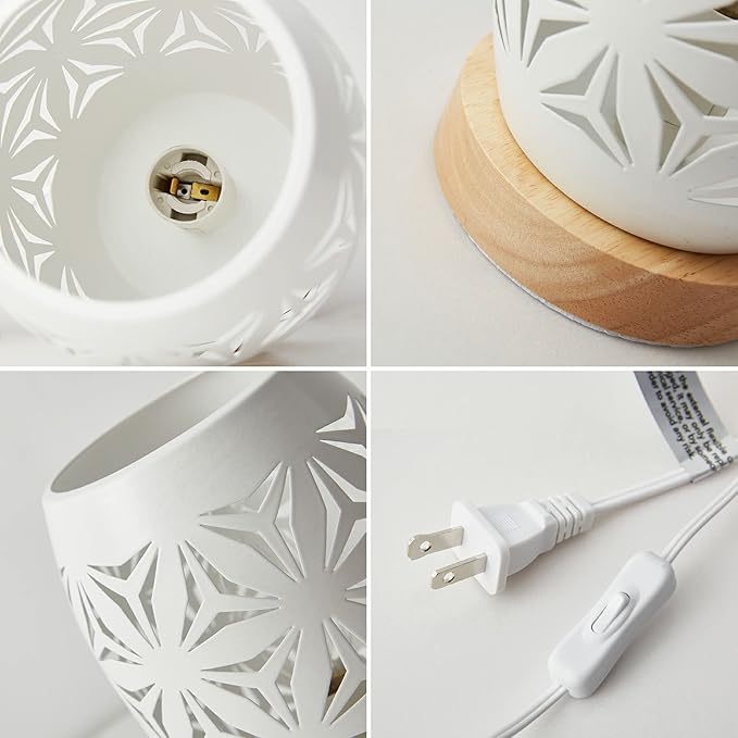 - ✔️【Comfortable Lighting】- Our small desk lamp design with a white metal hollow-shade which softens the light, creates a comfortable atmosphere when you spend time with your family. it's better for protecting your eyes.
