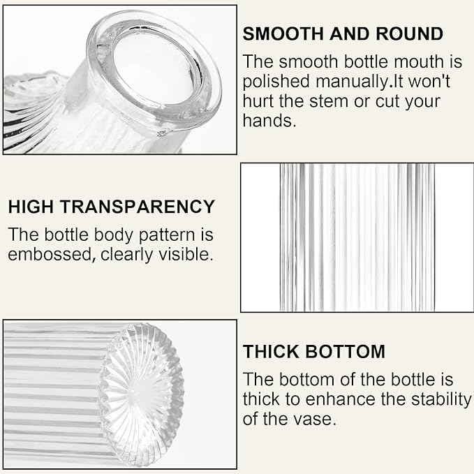 - Thick and Sturdy Glass: These charming small flower vases are made of thick and strong glass, which is durable and not easily broken. The patterned surface treatment makes them look very textured and makes them shine under the light. You may see the beauty of individual stems of flowers and garden cuttings vividly from the glass vase. Feel the nature inside your home and make your home beautiful