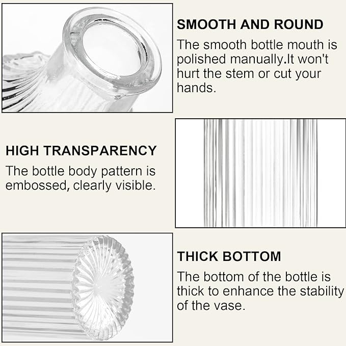 - Sturdy and Durable: Made of thick and strong glass, these clear bud vases are designed to last. The rustic surface treatment makes them look very textured and shine under the light. You can be confident in their durability as each vase has been drop tested and is more durable than other glass products on the market. These vases will not easily break and are perfect for everyday use